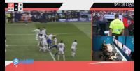 比赛进行到第42分钟,当时皇马以2-1领先,朗格莱在一次角球进攻中打入一球。皇马球员立刻对主裁判阿尔贝罗拉-罗哈斯提出抗议,认为法国后卫在射门时有手球嫌疑。